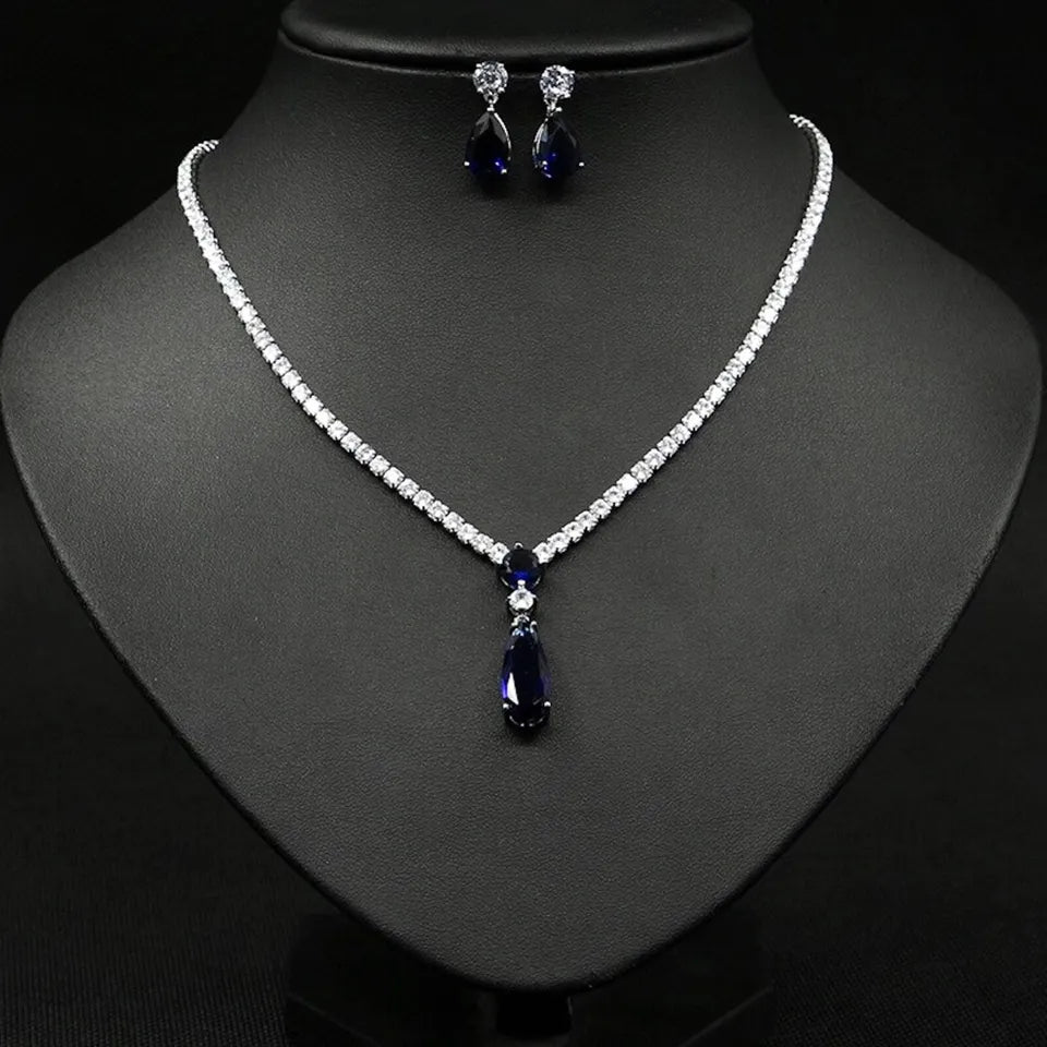 18k Platinum Blue Sapphire Tennis Necklace Earrings Set