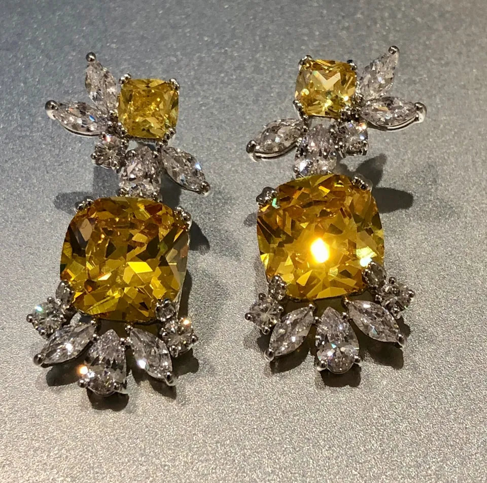 18k Platinum 6 CTW Yellow Sapphire Emerald Drop Earrings