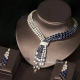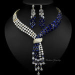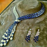 18k Gold Blue Sapphire Necklace Earrings Set