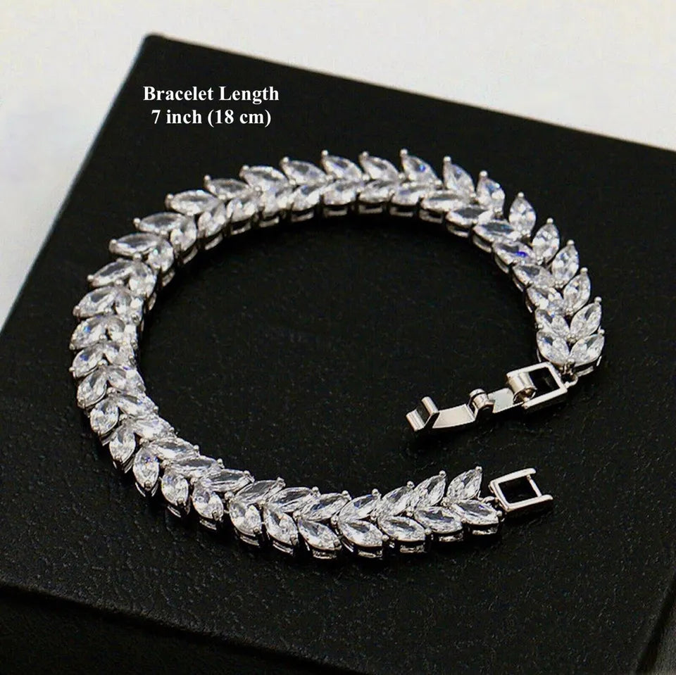 18k Platinum Marquise Diamond Necklace Earrings Bracelet Set