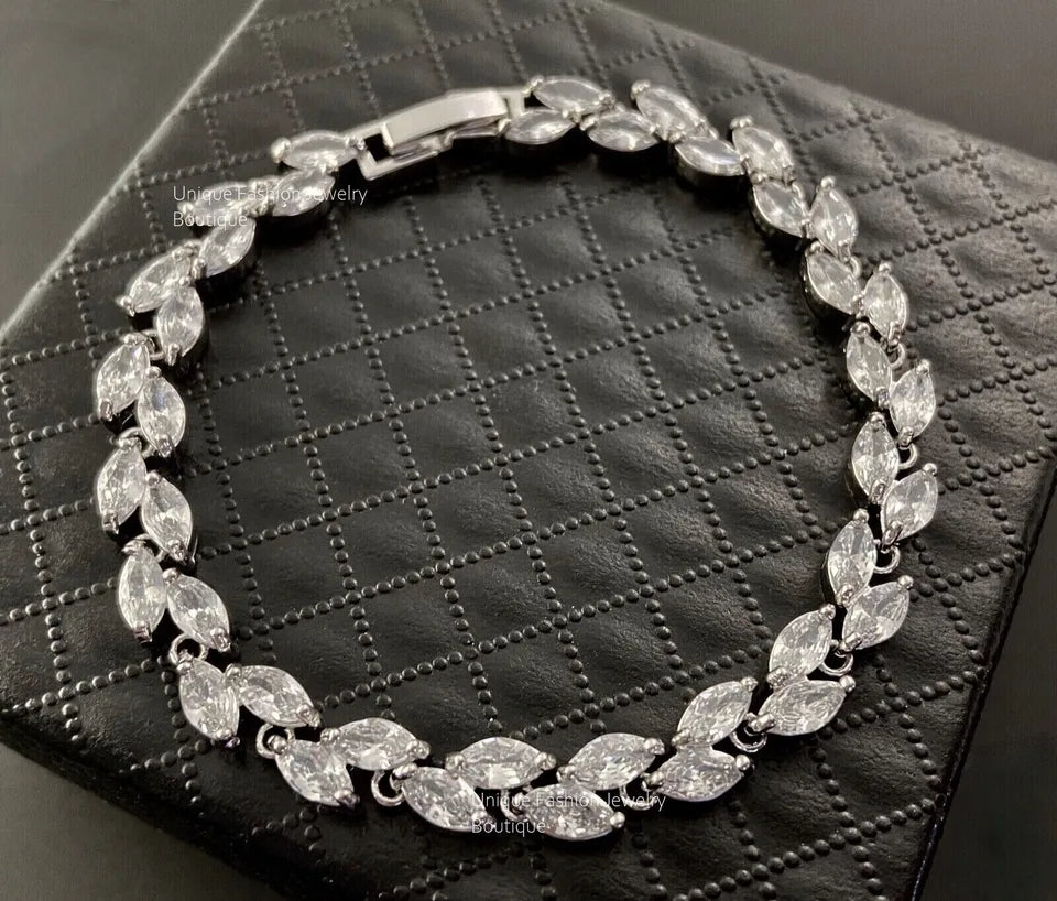 18k Platinum Marquise Diamond Tennis Necklace Earrings Bracelet Set