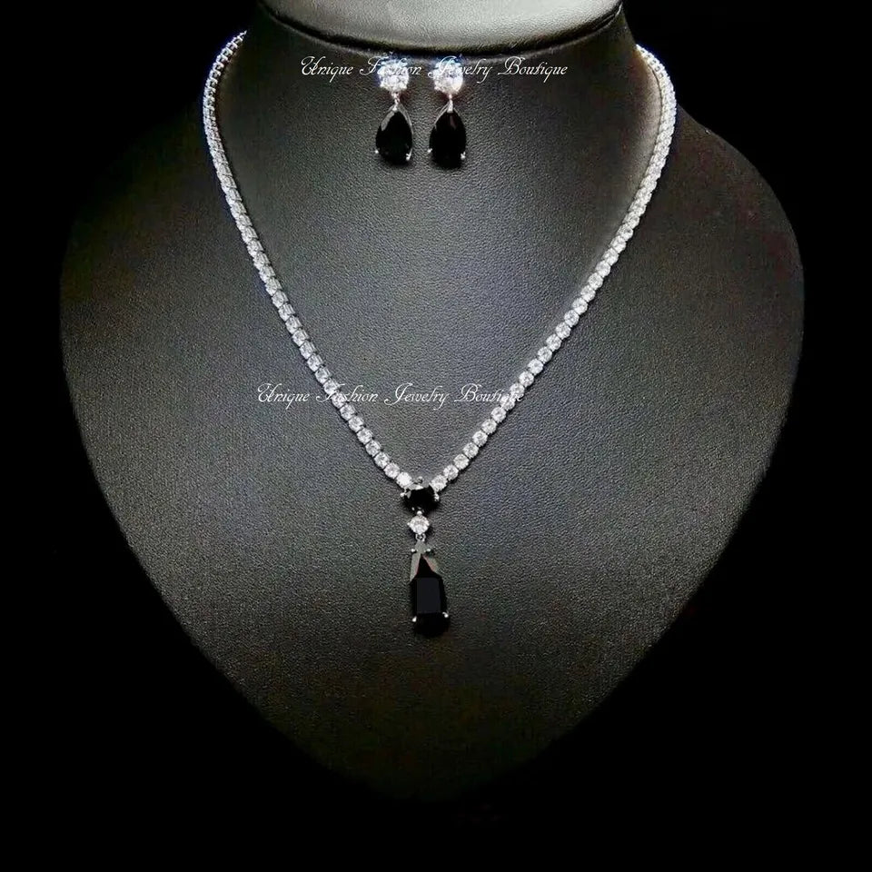 18k Platinum Black Onyx Tennis Necklace Earrings Set
