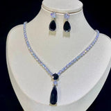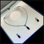 18k Platinum Blue Sapphire Tennis Necklace Earrings Set
