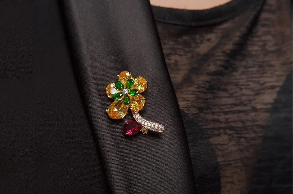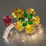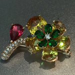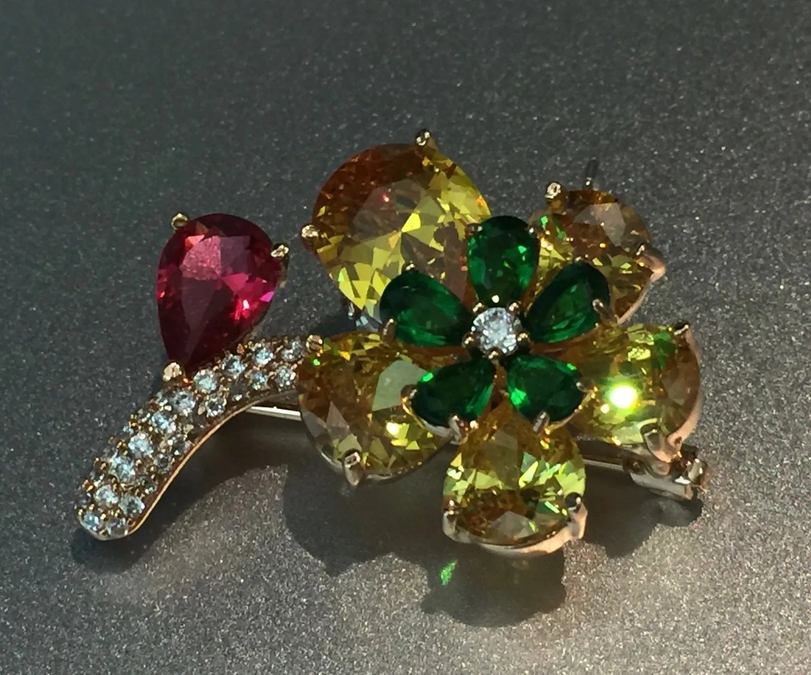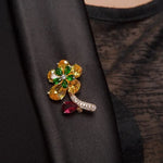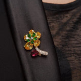 18K Rose Gold Multicolor Sapphire Flower Brooch Pin