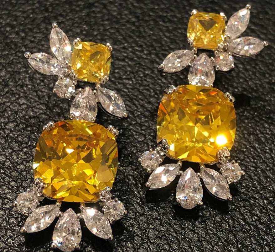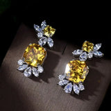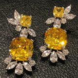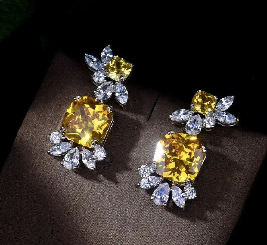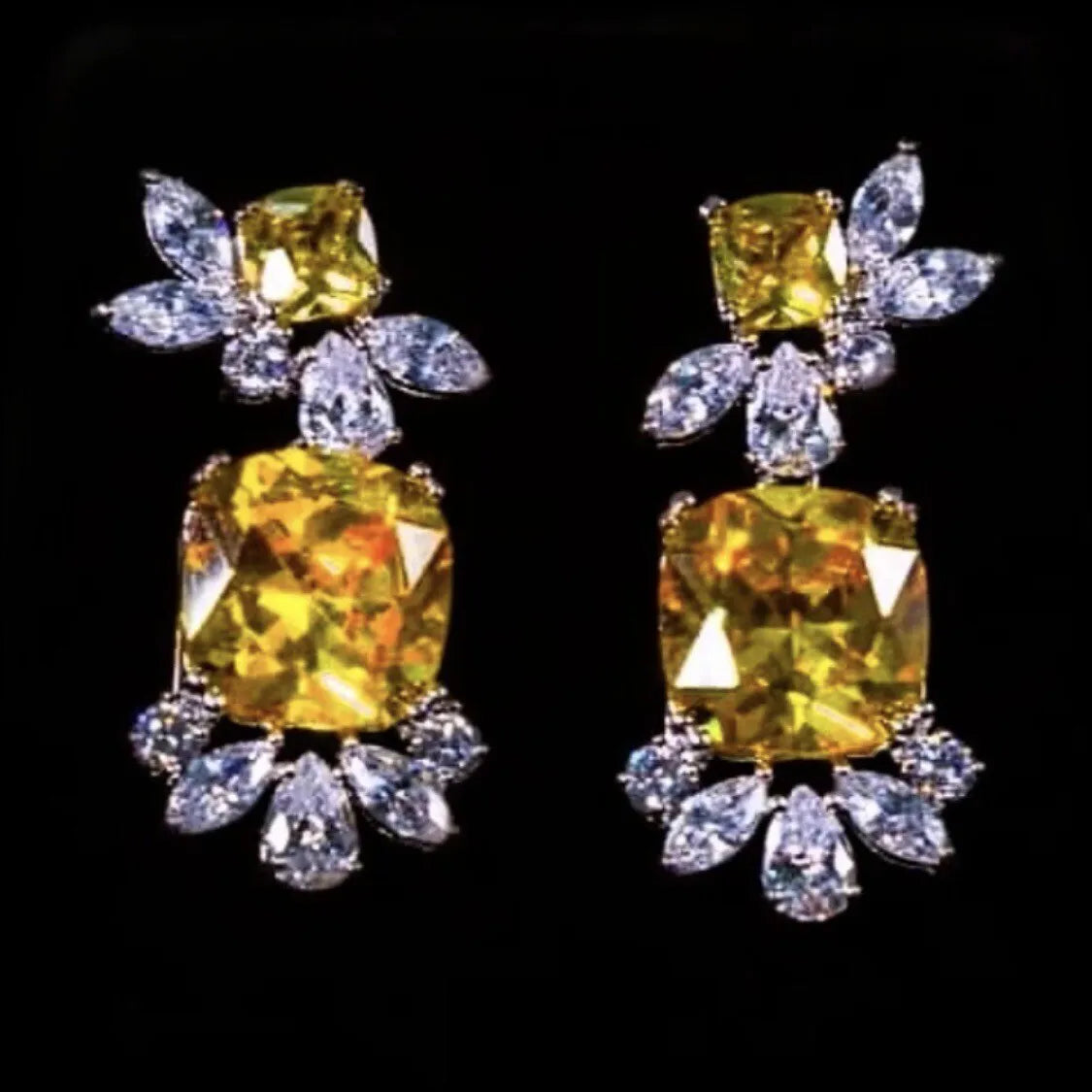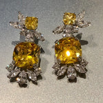 18k Platinum 6 CTW Yellow Sapphire Emerald Drop Earrings