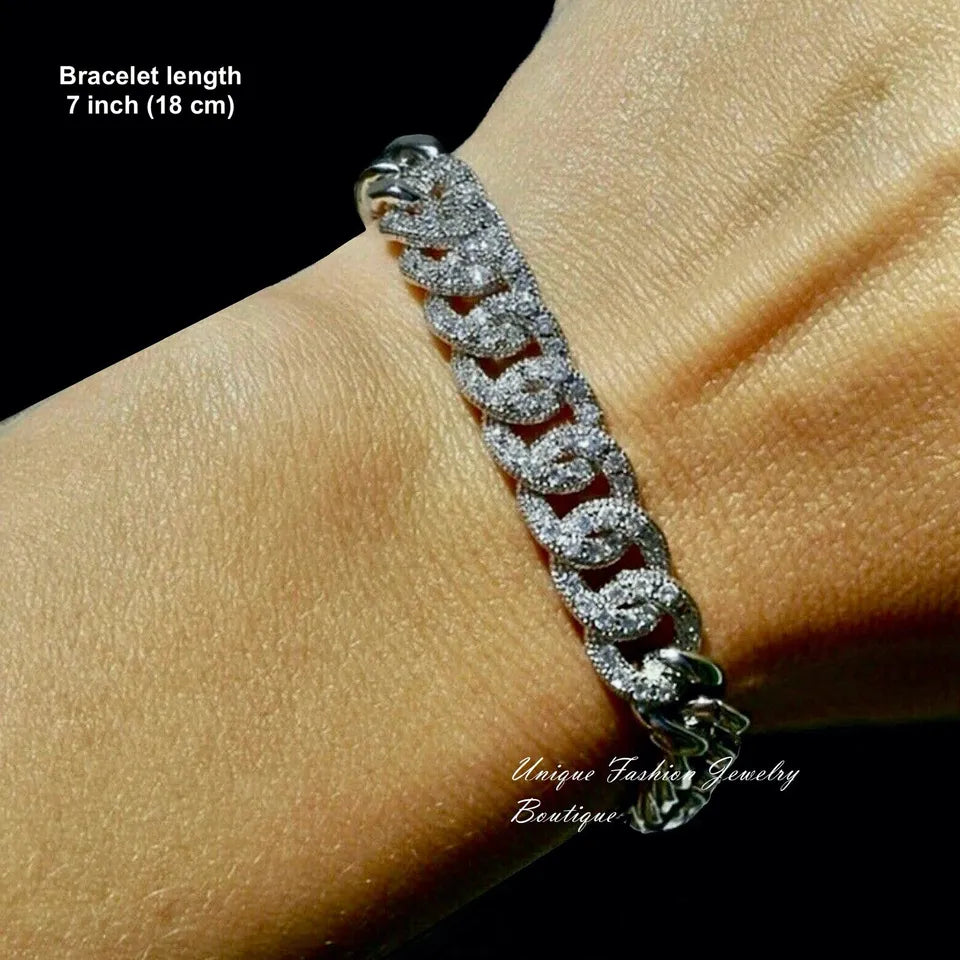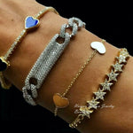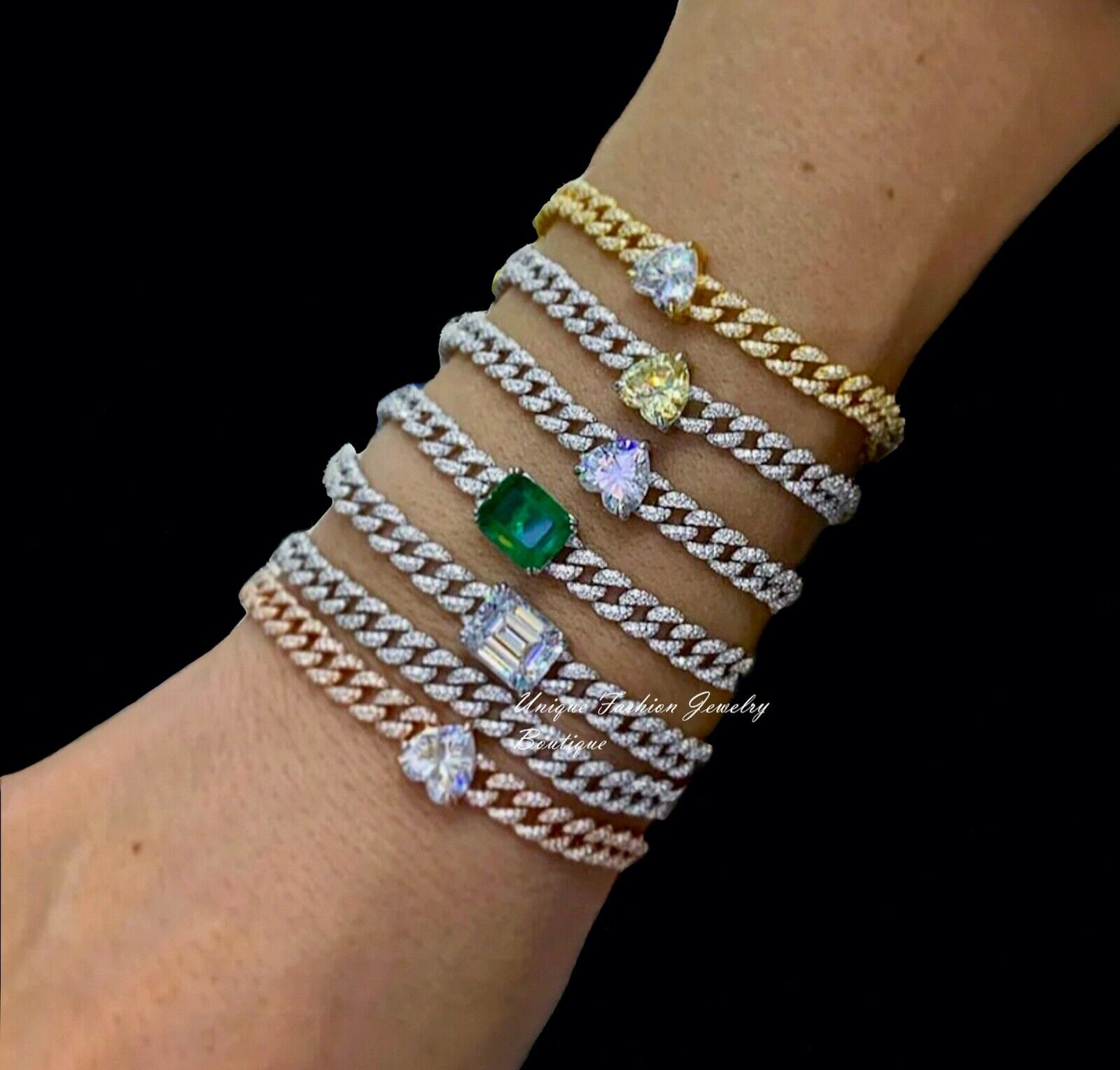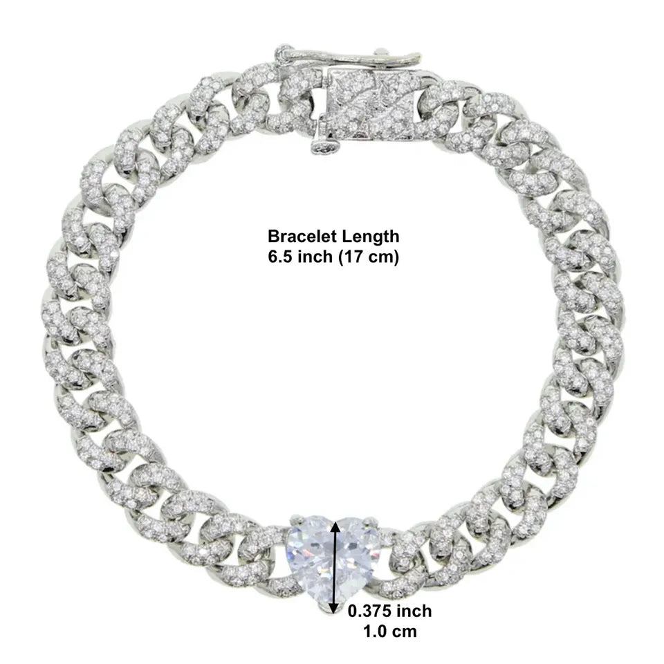 - Gemstone Cut & Setting For the Heart Charm Cuban Link Bracelet: 10 mm Heart Cut Prong & Round Micro-Pave