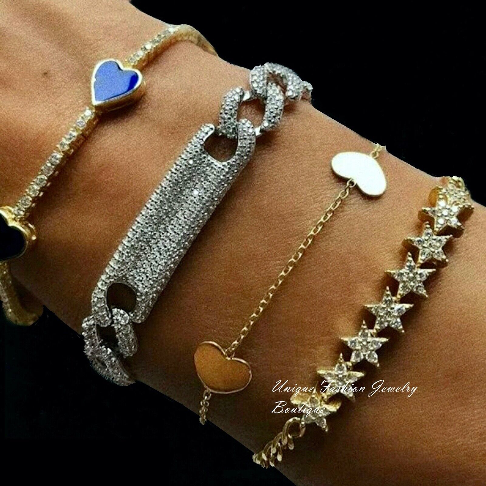 - Closure For Heart Charm Cuban Link Bracelet: Double Snap Tongue Clasp