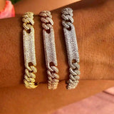 - Gemstone Cut & Setting For the Bar Charm Cuban Link Bracelet: Round Micro-Pave