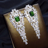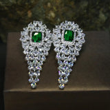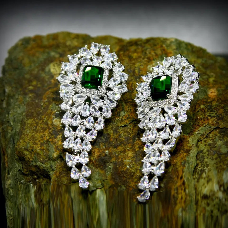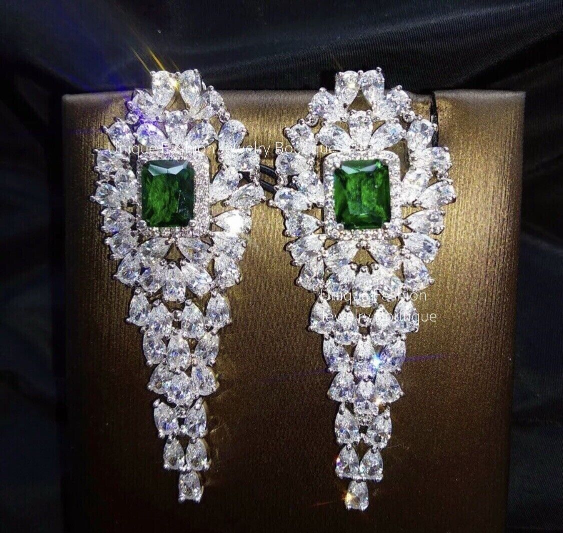 18k Platinum Green Emerald Chandelier Earrings
