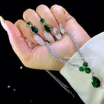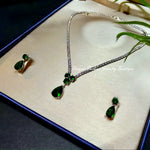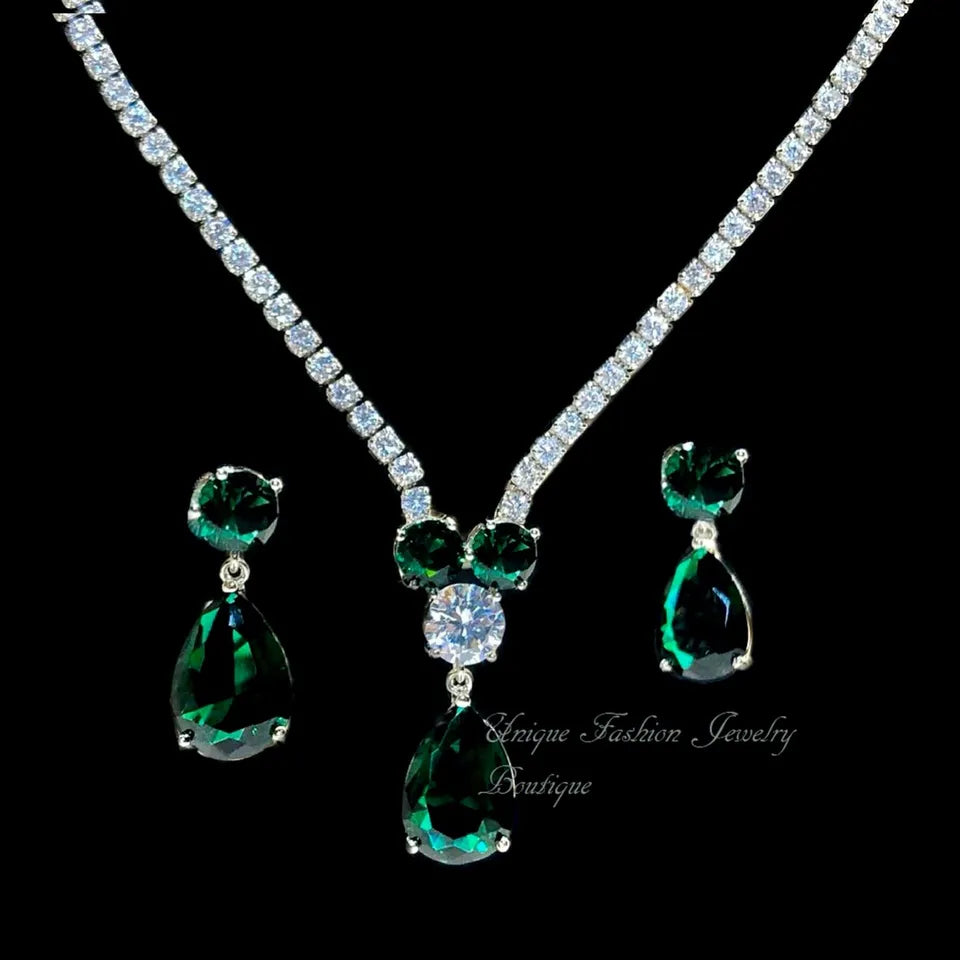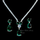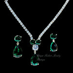 18k Platinum Green Emerald Tennis Necklace Earrings Set