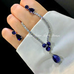 18k Platinum Purple Amethyst Tennis Necklace Earrings Bracelet Set