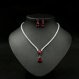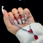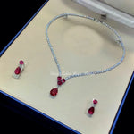 18k Platinum Red Garnet Tennis Necklace Earrings Set