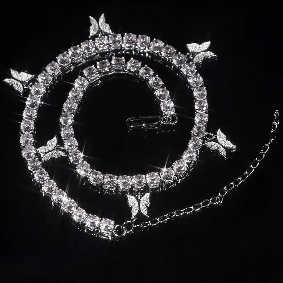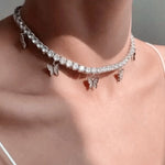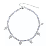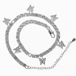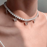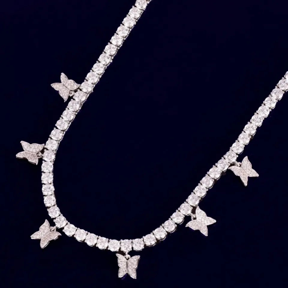 18k Platinum Round Diamond Tennis Necklace Butterfly Charm