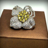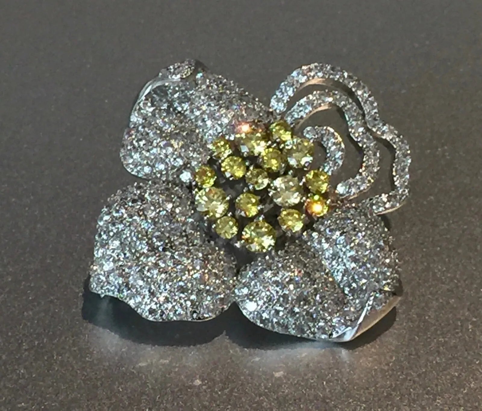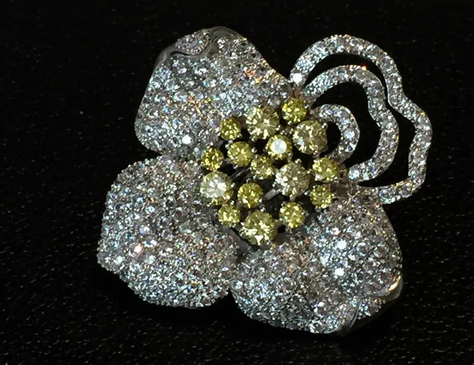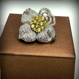 18K Platinum 3 CTW yellow Sapphire Flower Brooch Pin