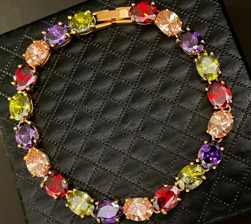 18k Gold 27 CTW Multicolor Sapphire Gemstone Tennis Bracelet