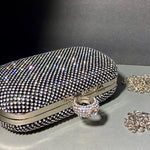 Diamond Clutch Black Lace Evening Bag with Jeweled Ring Clasp
