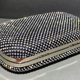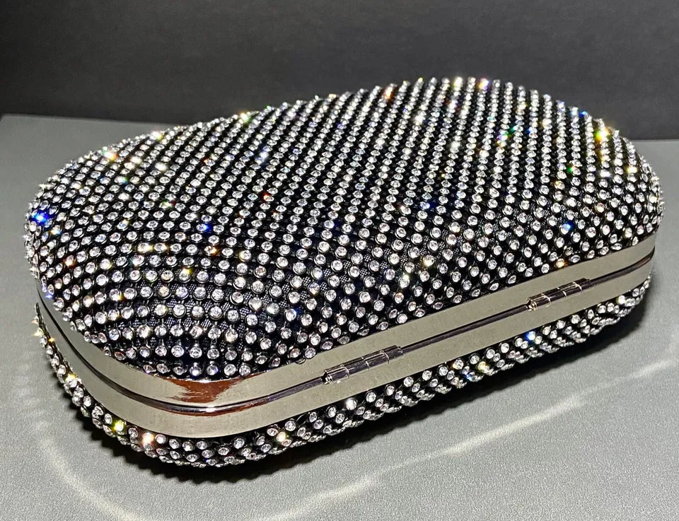 - Design & Frame: Rectangular Shape Clutch Bag with Sparkling Swarovski Crystals on Black Lace. Swarovski Diamonds On Both sides of the Bag.